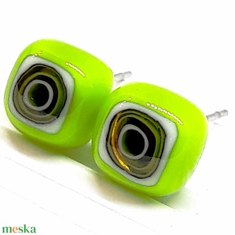 Klimt nyomán - millefiori kockácska üveg fülbevaló ORVOSI FÉM alapon, üvegékszer