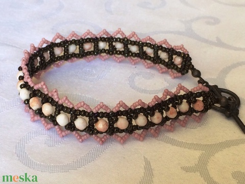 - Anyaga: japán gyöngy, cseh csiszolt gyöngy, csomórejtő, t-kapocs, gyöngy, üveg