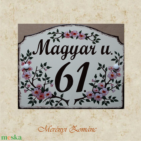 Házszámtábla. Utcanévtábla, tűzzománc.