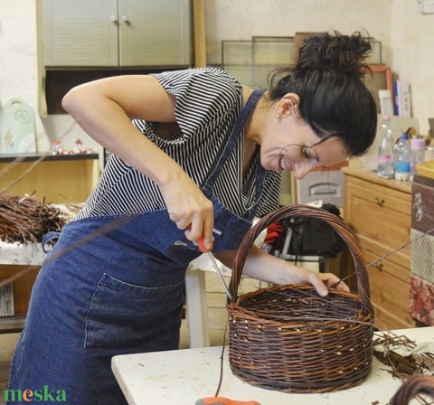 A 6 órás foglalkozás során mindenki megfon pácolt fa alapra egy közepes méretű, kerek vagy ovális gombász (vagy piacra járós) kosarat tradicionális, csavart füllel.