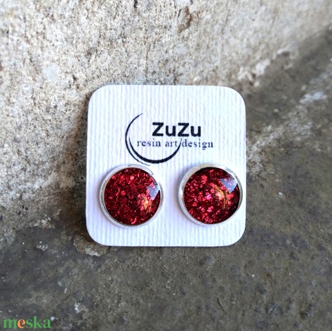 Csillogó piros színű textilbőr és műgyanta pötty fülbevaló