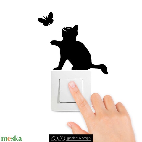 Cica és pillangó - falmatrica matrica faltetoválás fali kapcsoló villanykapcsoló aranyos vicces dekoráció