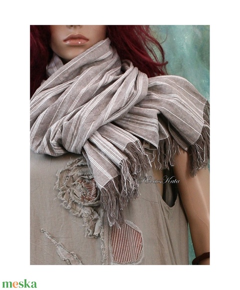 CSÍKOS - széles lenvászon stóla, sál / bézsek