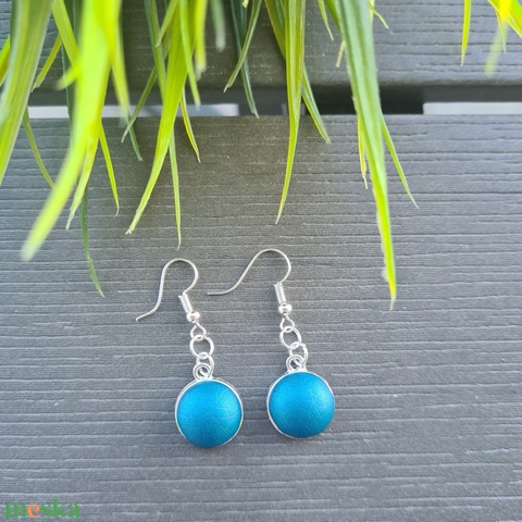 Metál türkiz - ezüst lógós fülbevaló