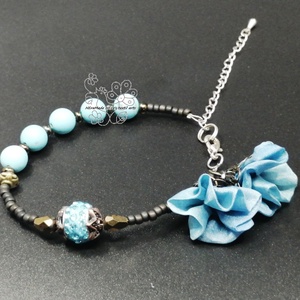 Bohém virágos karkötő türkiz virágokkal
