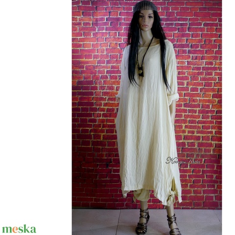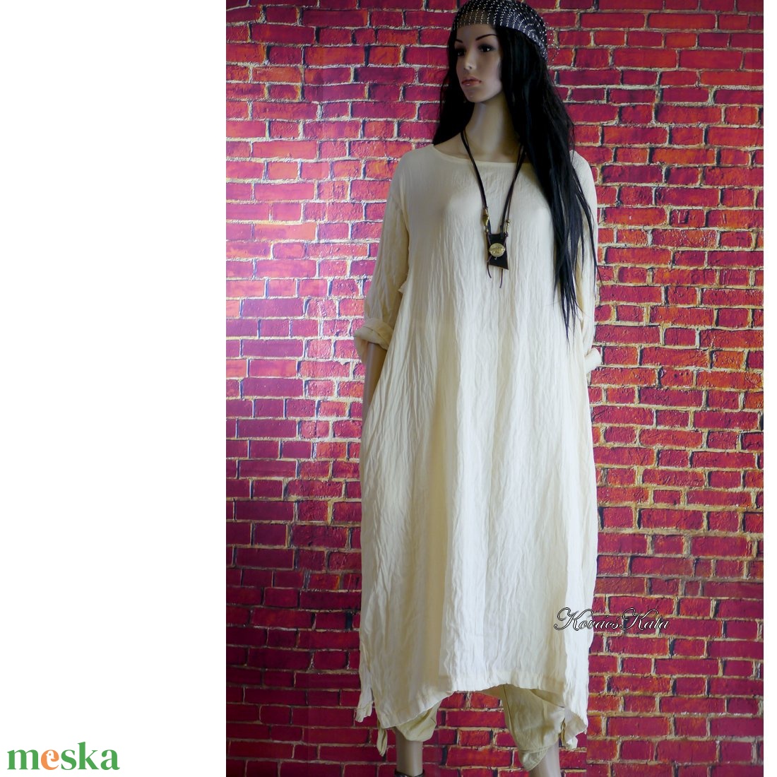 JAFA - lagenlook selyem-organza tunika-ruha / vajszín