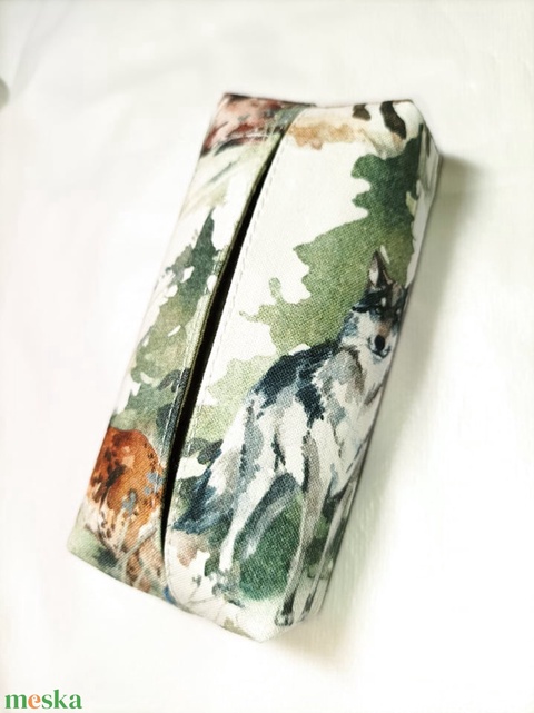 Hóbagoly-Hiúz-Farkas mintás bélelt papírzsebkendő tartó