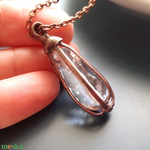 45 centi hosszú réz színű fém láncon küldöm, amit kérésre méretre igazitok. A láncra delfinkapcsot szereltem.