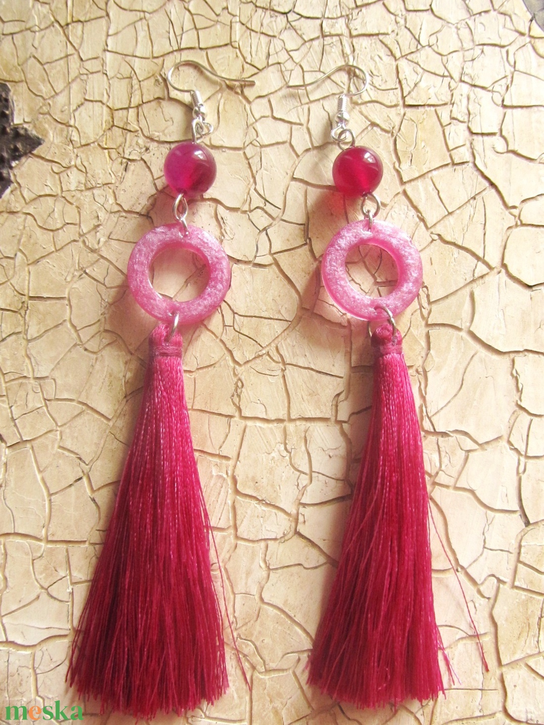 rózsaszín achát, pigmentpor, bojt, gyanta, ezüst szín szerelékek