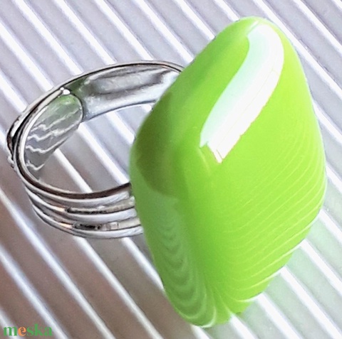Bambuszrügy üveg kocka gyűrű, üvegékszer