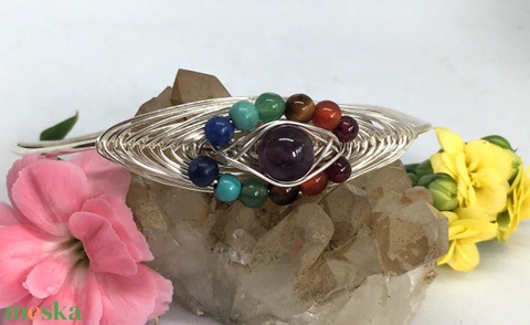 ezüstözött drót, türkenit, gránát, karneol, tigrisszem, aventurin, szodalit, ametiszt