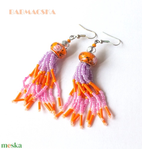 - Anyaga: fülbevalóalap, üveggyöngy, cérna, lámpagyöngy, tekla, üveg, gyöngy