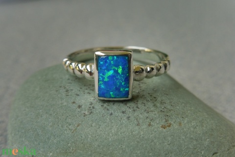 ezüst gyűrű kék opállal