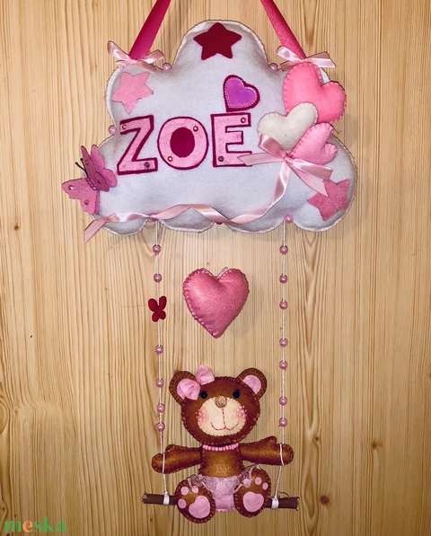 Hintázó kislány maci filc gyerek névtábla,ajtódísz,falidísz