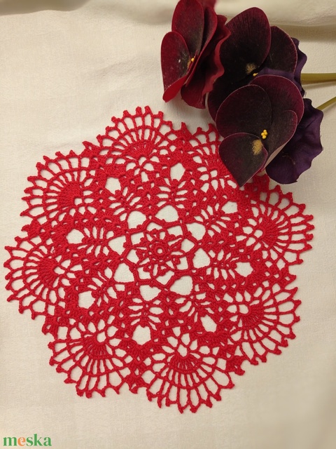Piros horgolt csipke terítő