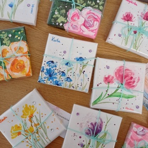 Egyedi mini, virágos, kék festmény a saját elképzelésed alapján, díszcsomagolásban, névvel, dátummal, egyéni felirattal