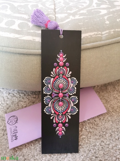Fa alapra festett mandala könyvjelző - lila-rózsaszín