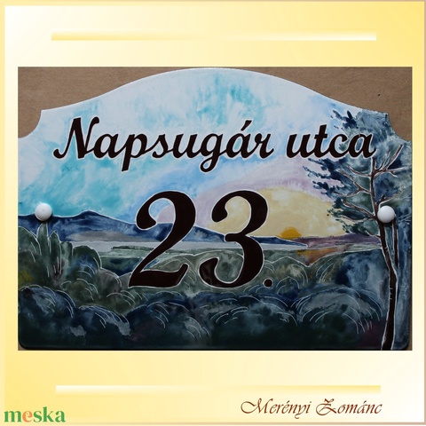 Egyedi kézzel festett tűzzománc házszámtábla.