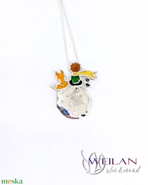 A kis herceg - sárga sállal - ezüst tűzzománc medál
