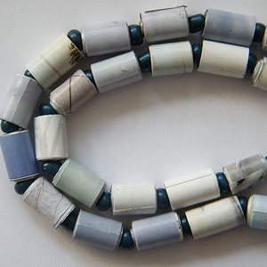újrahasznosított papír, ragasztó, akrilgyöngy, lakk, gumis damil, papír