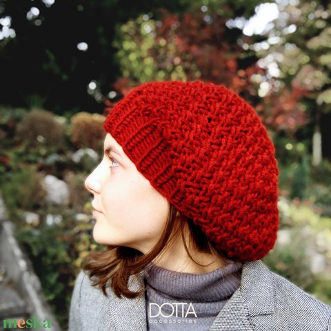 Kincső kötött sapka - téli meleg vastag női beanie slouchy sapi - bordó - gyapjús fonalból