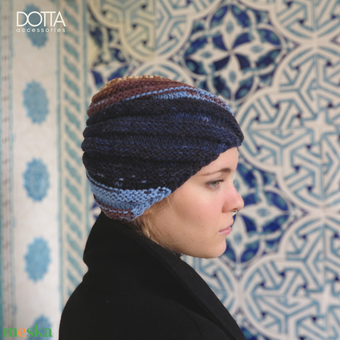 Csavart sapi kék színekben - batikolt fonalból kötött női sapka