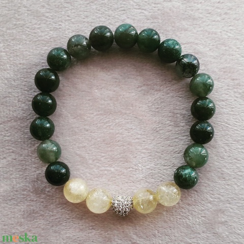 Citrit - Mohaachát ásványkarkötő arany színű cirkónia köves gömb charmmal