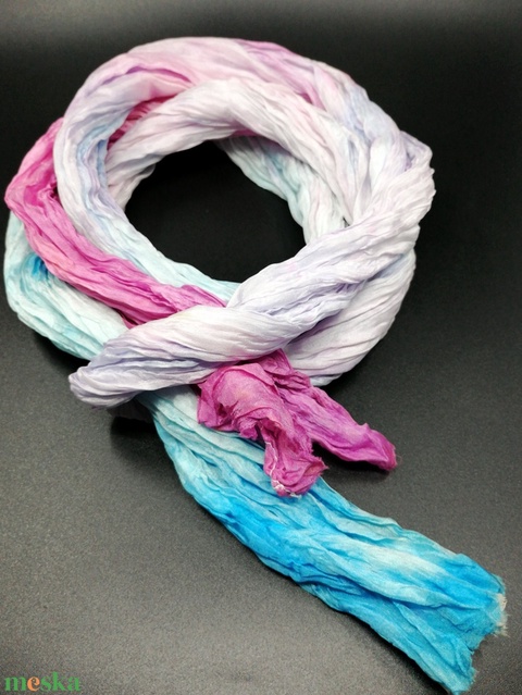 Pasztell kék rózsaszín ráncos gyűrt hosszú selyem sál
