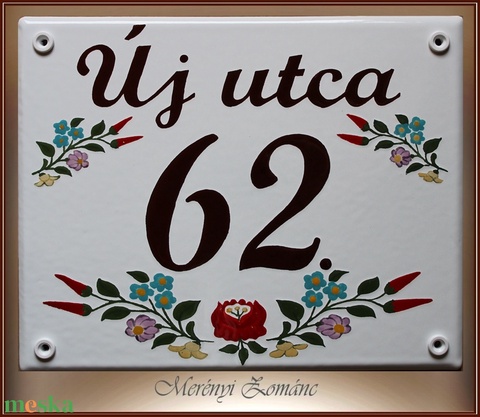 “Kedves Èva köszönjük a csodaszép hàzszàmot! Kedves èrdeklődök ajànlom szeretettel a Merènyi zomànc termèkeit. ”