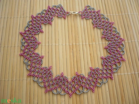 szürke-rózsaszín csipkeszerű gyöngy nyakék, gyöngynyaklánc, ajándék