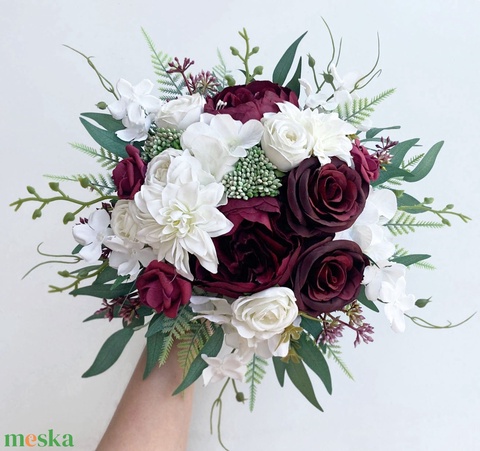 Menyasszonyi csokor selyemvirág bordó
