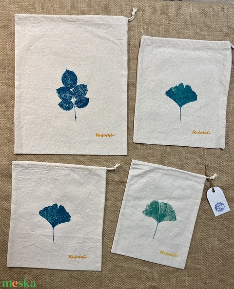 Öko vászonzsákok Ginko levél lenyomattal (4db)