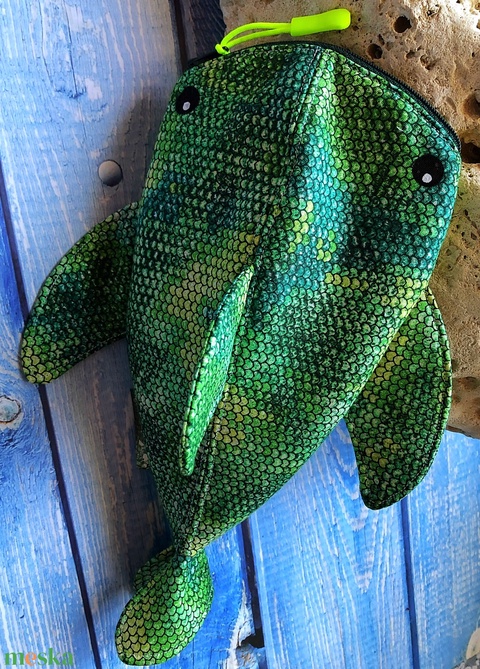 Rendelhető!- Sötét zöld pikkelyes cápa tolltartó neszesszer