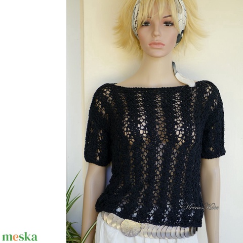 FANCY - kézzel kötött csipke pulóver / fekete KÉSZLETEN
