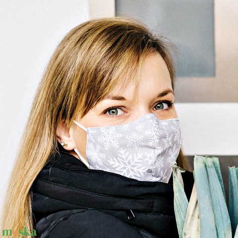Ezüst hópelyhes elegáns szájmaszk - hópehely minta