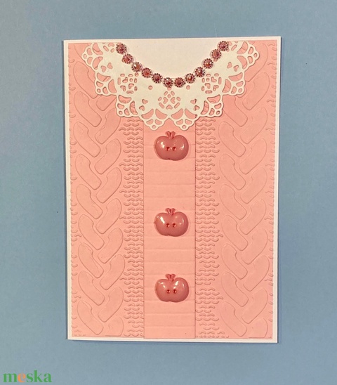 - Anyaga: dizájnpapír, karton, gomb, strassz, ragasztók