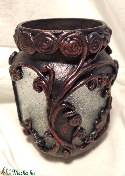 dunsztos üveg, foam clay, akril festék, wax, jégkristály, üveg