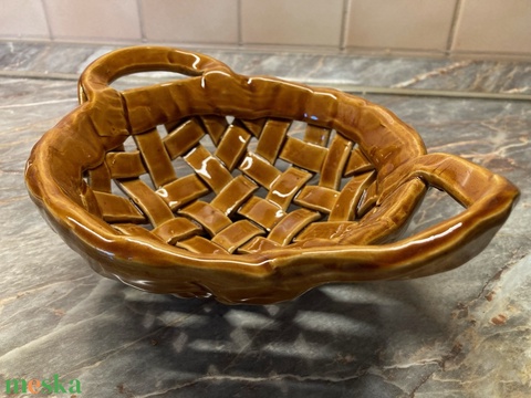 Mázas kerámia fonott tál