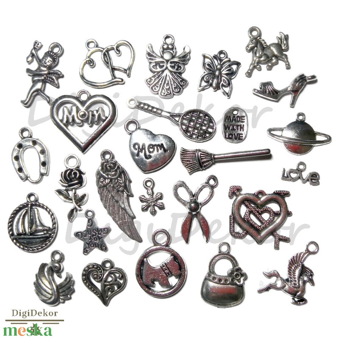 - Anyaga: fémötvözet, papír, üveg, üveglencse, ékszerdrót, üveggyöngy, gyöngy