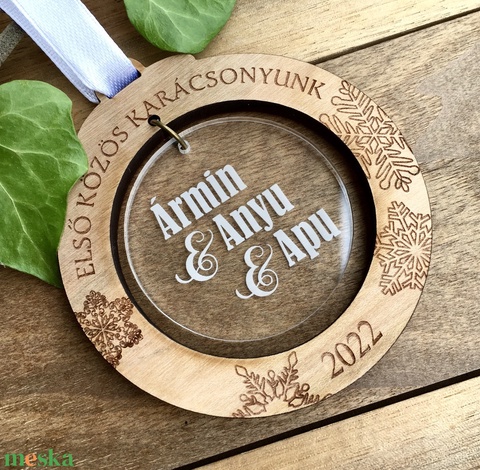 Kerek karácsonyfadísz tetszőleges felirattal