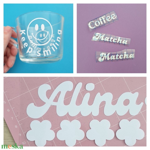 Az öntapadós feliratok ragaszhatóak fémre, fára, műanyagra , üvegre és kerámiára is.