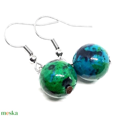 A smaragd románca krizokolla gyöngy lógós fülbevaló NEMESACÉL akasztón, ásvány ékszer