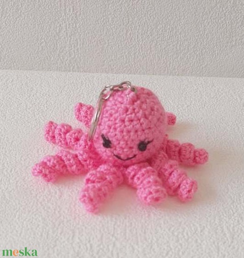 Horgolt rózsaszín polip kulcstartó, táskadísz
