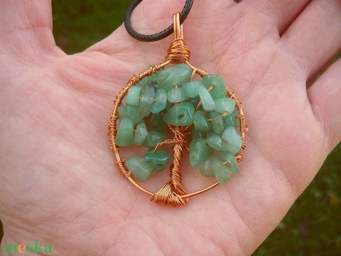 Életfa medálos nyaklánc aventurin ásvánnyal, csakra, féldrágakő ékszer, ajándék