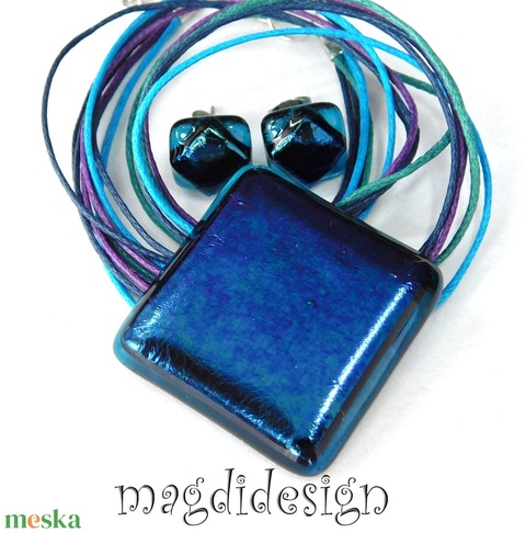 Kék eozinos üvegékszer szett, nyaklánc fülbevaló