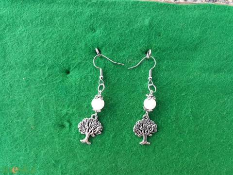 ékszer, fülbevaló, lógó fülbevaló, rózsakvarc, életfa, orvosi, fém