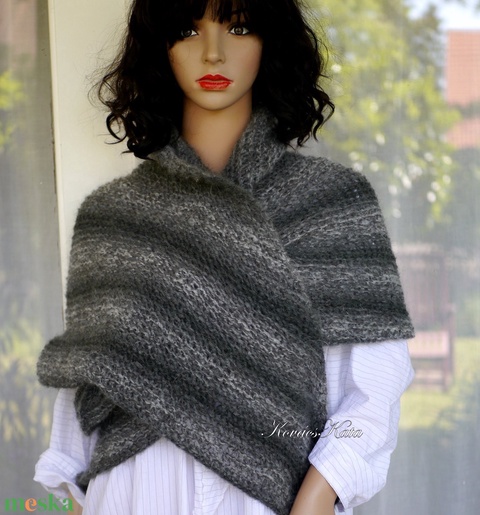 HABKENDŐ - exkluzív kézzel kötött mohair vállkendő / szürkék