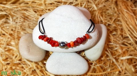Zsinór karkötő 8 mm-es hematit ásvánnyal és memóriadrótra fűzött ásványszemcsékkel