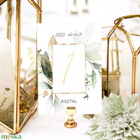 GREENLEAF Esküvői Asztalszám, Levelek Esküvői Asztalszám, Keretes Esküvői Asztalszám, Zöld Esküvői Asztalszám