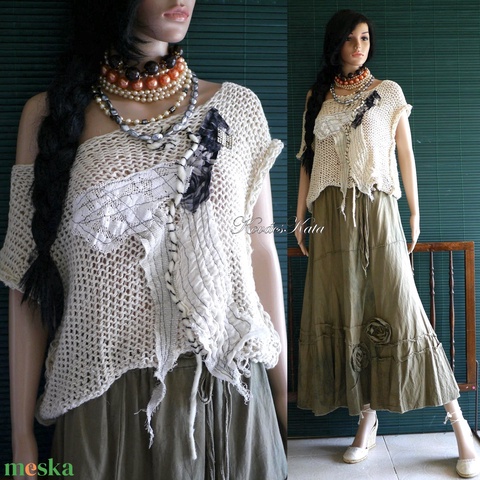 - Anyag/Összetevő 100% pamutfonal, pamutgéz, szuper-vastag gyapjúfonal, klöpli csipke, textil-vágat